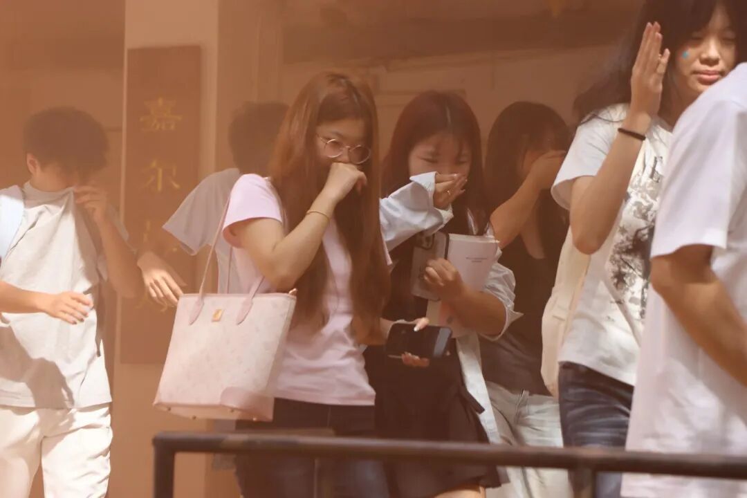 集合后,各班级清点人数并逐级上报,共有序撤离了1400余人,体现了良好的纪律性与应急反应能力。