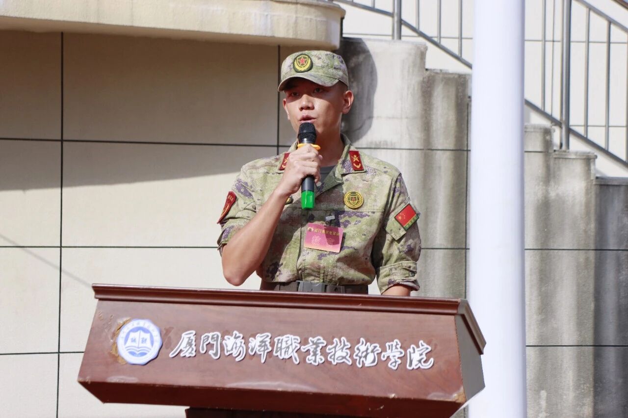 承训教官代表许逸超在发言中表示,全体教官将以高度的责任感和专业的军事素养,科学组训、文明施训,确保军训工作安全有序开展。学生代表航海3251班廖豫同学发言时表示,将珍惜这次锻炼机会,怀揣“请党放心,强国有我”的坚定誓言,以饱满的热情和积极的态度完成军训任务,无惧挫折,勇往直前,展现航海学子的良好精神风貌。