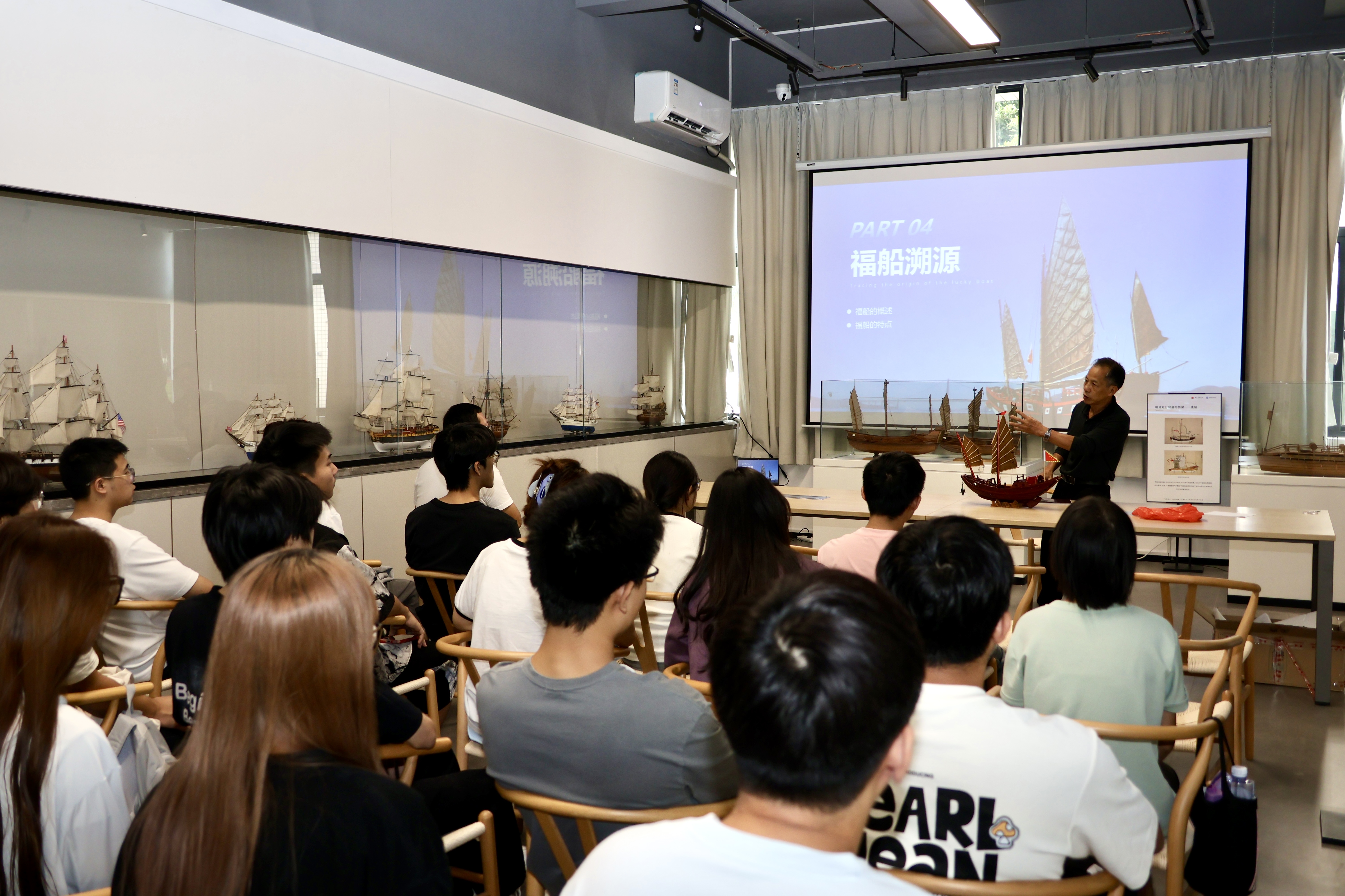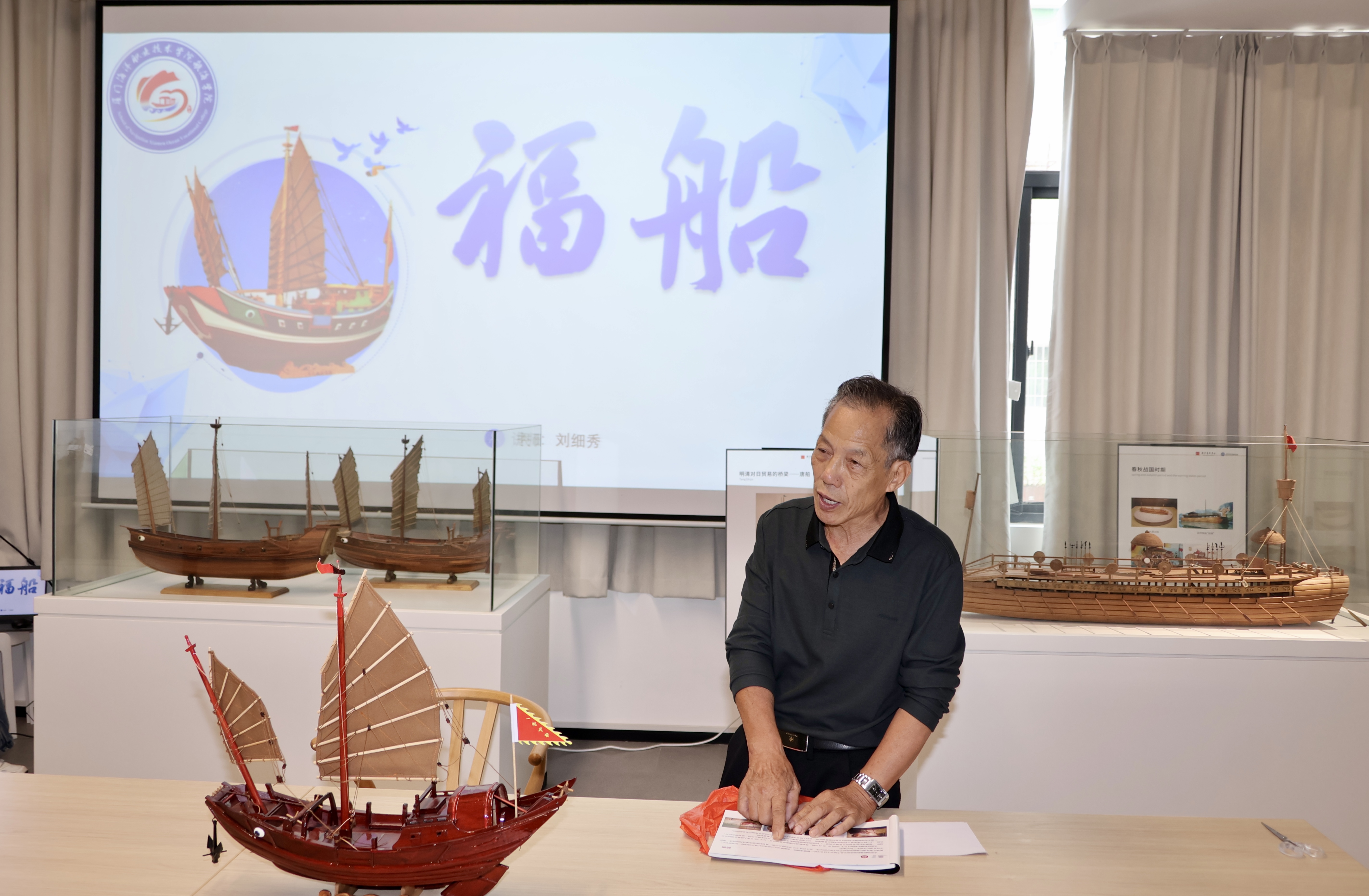 活动依托2025教育部港澳台学生国情教育项目《以“船”述史:中国古船文化》精品课程,面向港澳台学生及航海学院在校生开展非遗文化专题讲座。活动特邀水密隔舱福船制造技艺的国家级代表性传承人、航海学院船模制作导师刘细秀,介绍福船历史、制造技艺、文化习俗以及当前的传承与保护情况,呈现水密隔舱福船制造技艺丰富的文化底蕴。
