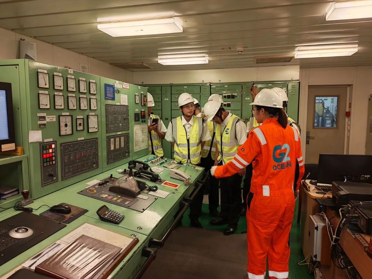 机舱作为船舶的“心脏”,是此次研学的重点环节之一。在机舱内,复杂的机械系统、精密的动力设备让同学们直呼“大开眼界”。船员从动力输出原理、设备运维机制等方面进行专业讲解,还特别强调了机舱安全管理的严苛标准,让同学们深刻认识船舶安全运营的重要性。