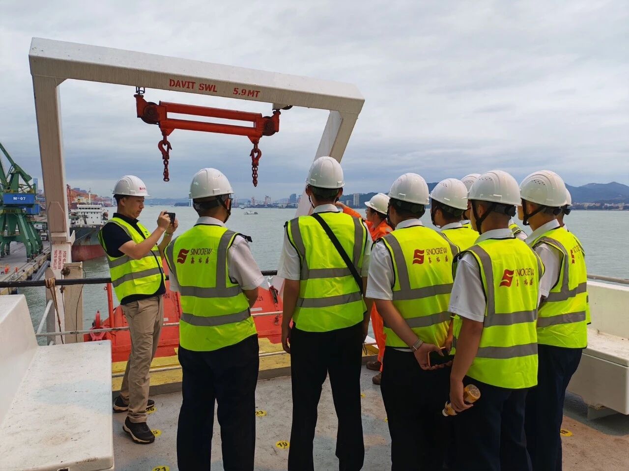 针对船舶安全设施,团队逐一参观了消防设备、救生装置等安全设施。船员结合真实案例,讲解了各类安全设施的使用场景与操作规范,同学们对船舶安全保障体系有了直观且深刻地理解。
