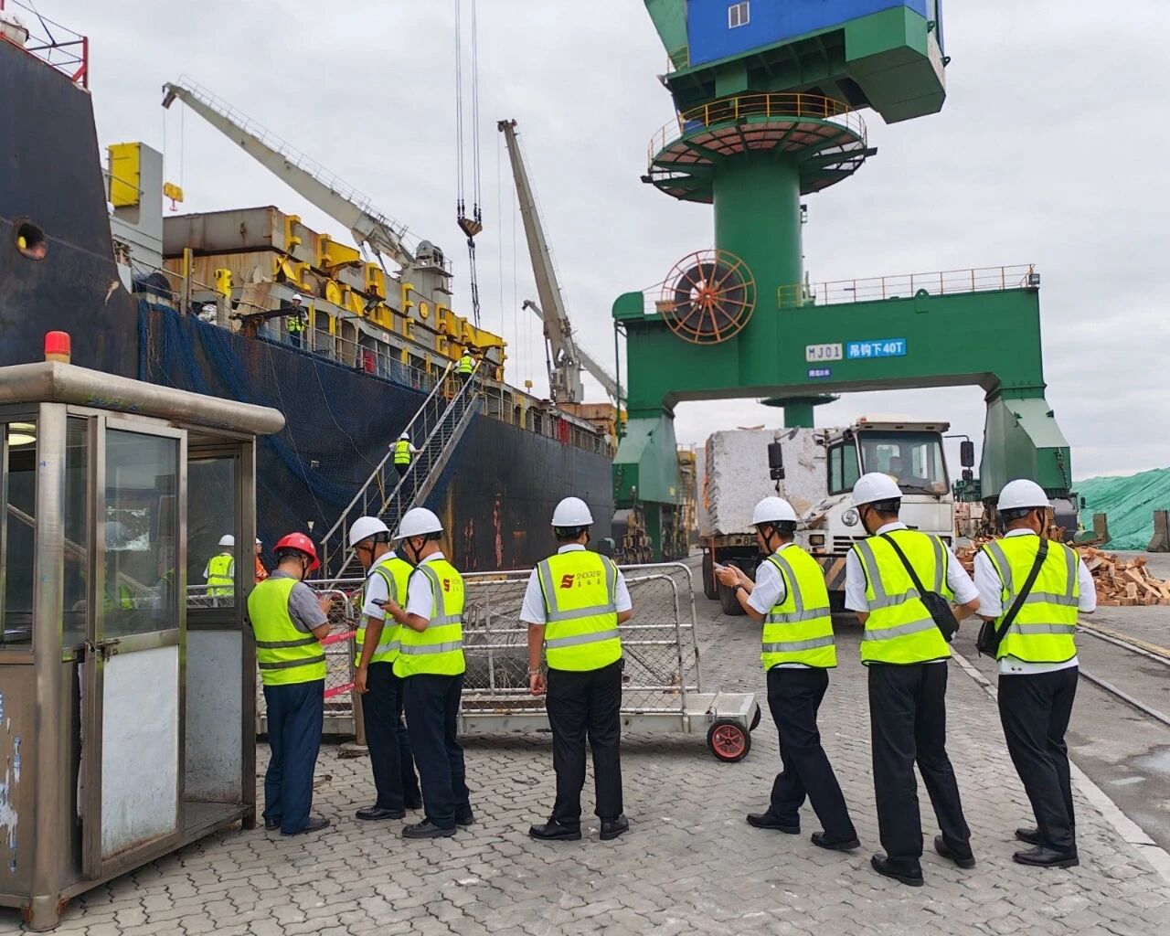 随后,在船员的引导下,师生们来到甲板区域。船员细致介绍了甲板设备的用途、货物装卸的规范流程以及甲板日常维护的关键要点,同学们近距离观察设备构造,对课本知识有了更具象的认知。