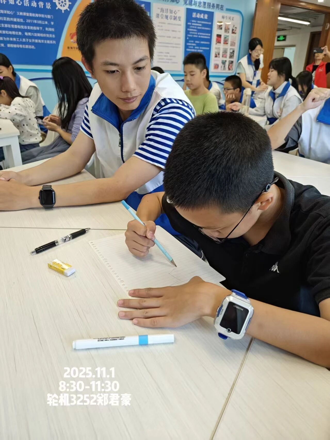 近日,在航海学院党总支和仙岳社区党委的联合指导下,我院再次启动“海洋知心”义教课堂活动。志愿者们为周边社区的小朋友们举办了一场主题为“以九三阅兵,看中国力量”的知识宣讲活动。