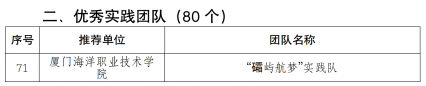- 厦门海洋职业技术学院“礵屿航梦”暑期社会实践队获省级优秀实践团队!