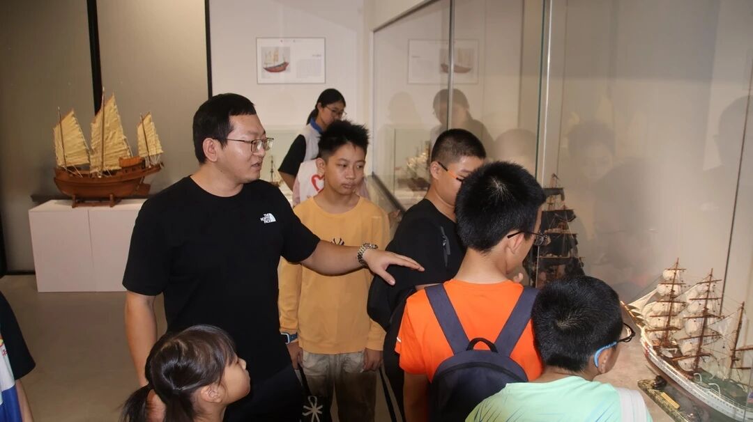 船模馆赵晨林老师与讲解员为访客讲解