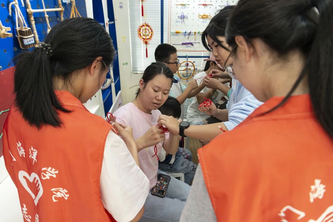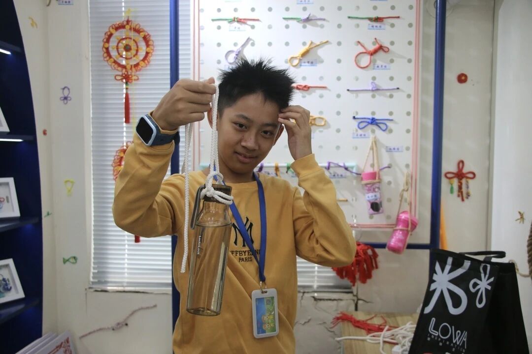 开放日的 “文化亮点”,当属充满温度的 “海丝结” 工作室。在这里,访客们亲手触摸用红绳、麻绳编织而成的 “海丝结”,感受古老技艺的细腻与精巧。讲解员介绍,“海丝结” 是学院在非物质文化遗产 “渔绳结” 与航海专业实用绳结基础上的创新之作 —— 既保留 “渔绳结” 承载的渔民生存智慧(曾是海上生产、固定渔具的关键技艺),又融合现代设计理念,成为连接传统与现代、非遗与航海的文化纽带。不少访客在工作人员的指导下尝试编织简单绳结,在一绕一系间,体会航海文化与非遗技艺的独特魅力。