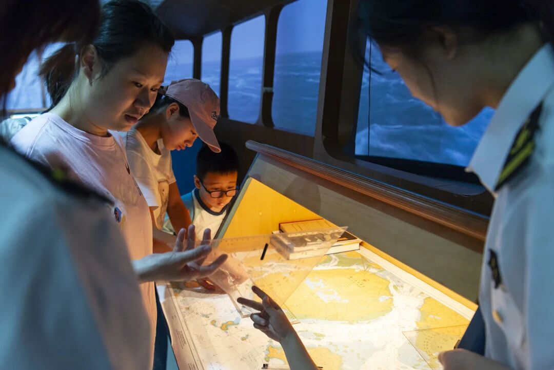 “现在切换到雾天航行模式,请注意观察雷达信号……” 在航海模拟驾驶室,先进的模拟设备让访客们过了一把 “船长瘾”。讲解员操作系统,依次模拟晴天、雨天、雾天等不同航行环境,屏幕上实时呈现海面风浪、能见度变化等场景,访客们轮流在驾驶位,在指导下学习操控舵盘、查看仪表盘,感受不同环境下的航行技巧。同时,大家还深入了解船舶轮机的工作原理 —— 从动力传输到设备运转的整个流程,直观认识航海技术背后的专业支撑,不少访客感叹 “原来驾驶船舶需要掌握这么多精密知识”。