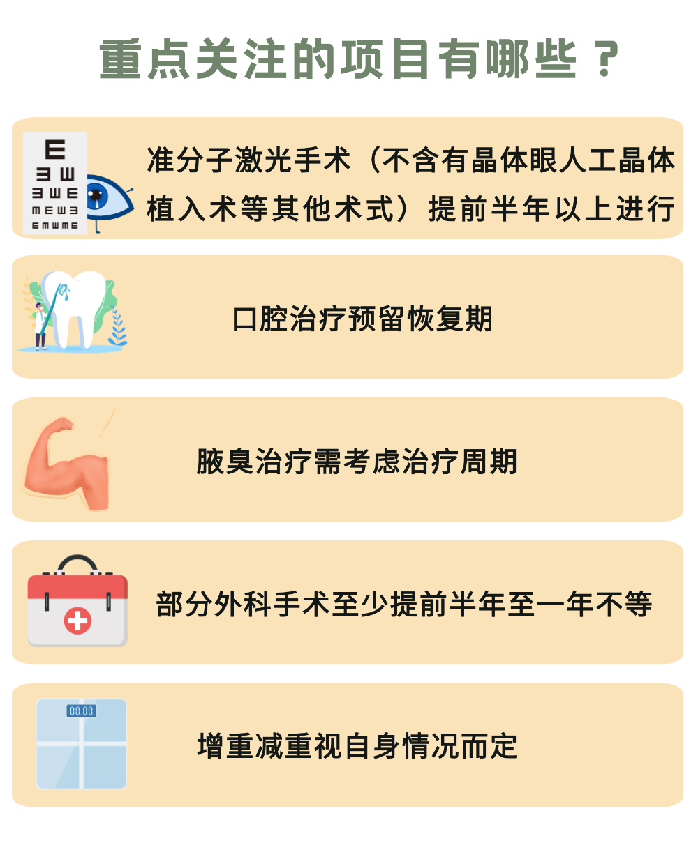 • 进行屈光不正经准分子激光手术(不含有晶体眼人工晶体植入术等其他术式)的小伙伴,一定要提前半年做手术,不然会直接被判定为不合格,做完手术后,也要注意恢复保养,术后视力恢复欠佳,也会在体检环节惨遭淘汰。