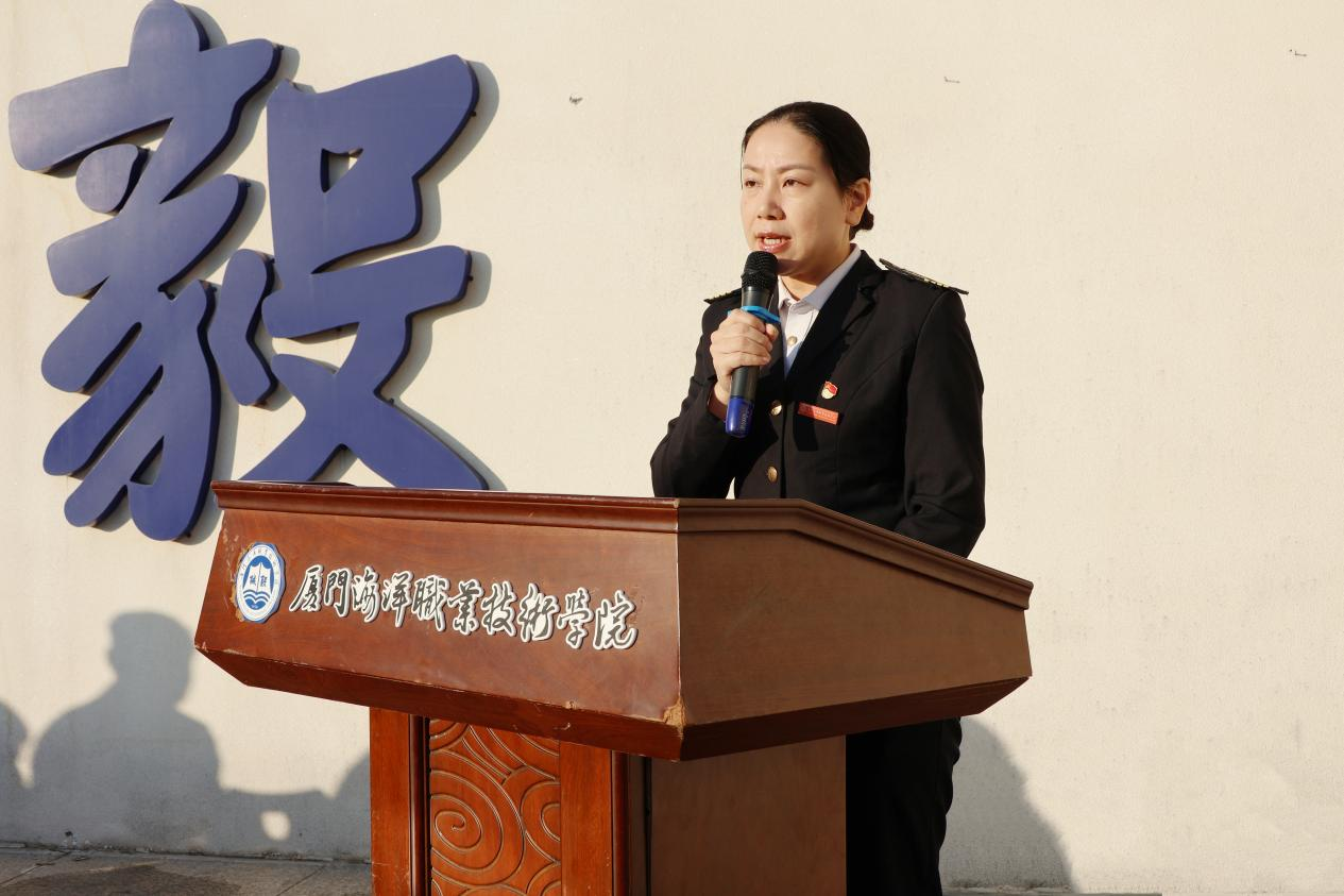 航海学院党总支书记、院长林珊仟作总结讲话。她向受表彰的运动员和受聘助教表示祝贺,并围绕国家宪法日主题向全体学生提出增强“法治意识”“安全意识”的殷切期望。林书记指出,作为航海人,应自觉尊法学法,将宪法精神融入职业信念;同时要时刻保持警惕,在生活中做到“勤核实、辨真伪、不贪利”;期末临近,她叮嘱同学们注意身心健康,学会调节压力、积极求助。