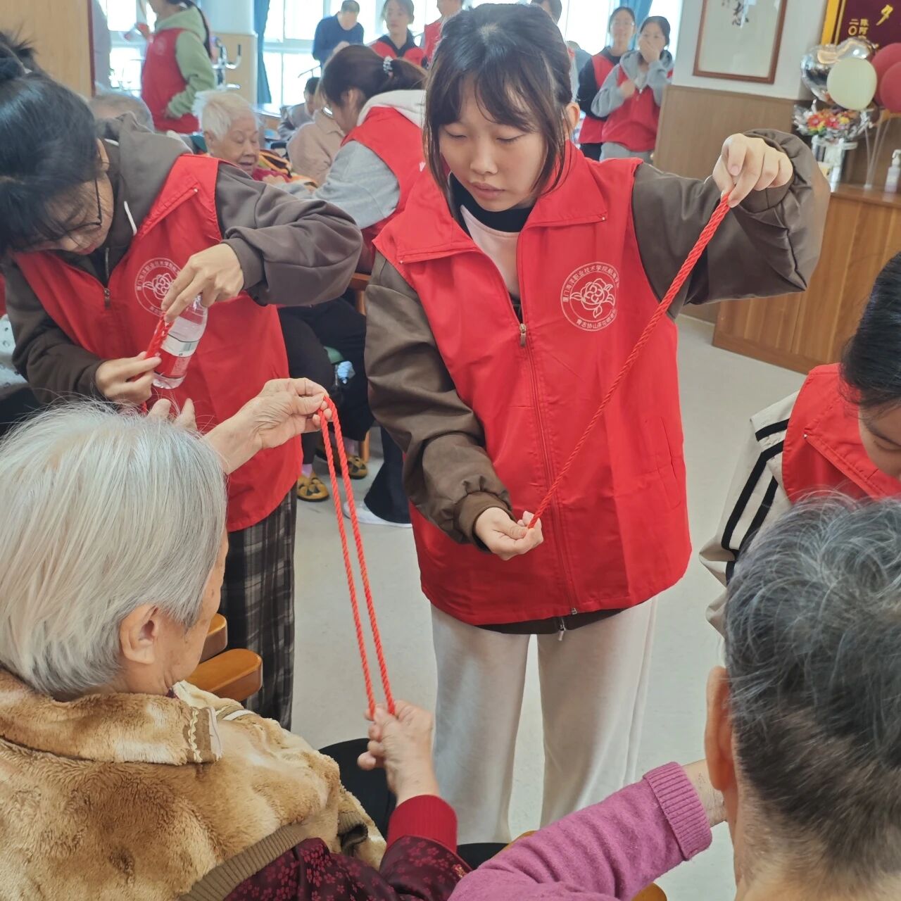最后,志愿者们手把手教爷爷奶奶编织航海学院特色的“海思结”,寓意薪火相传、砥砺前行,为活动画上温暖圆满的句号。