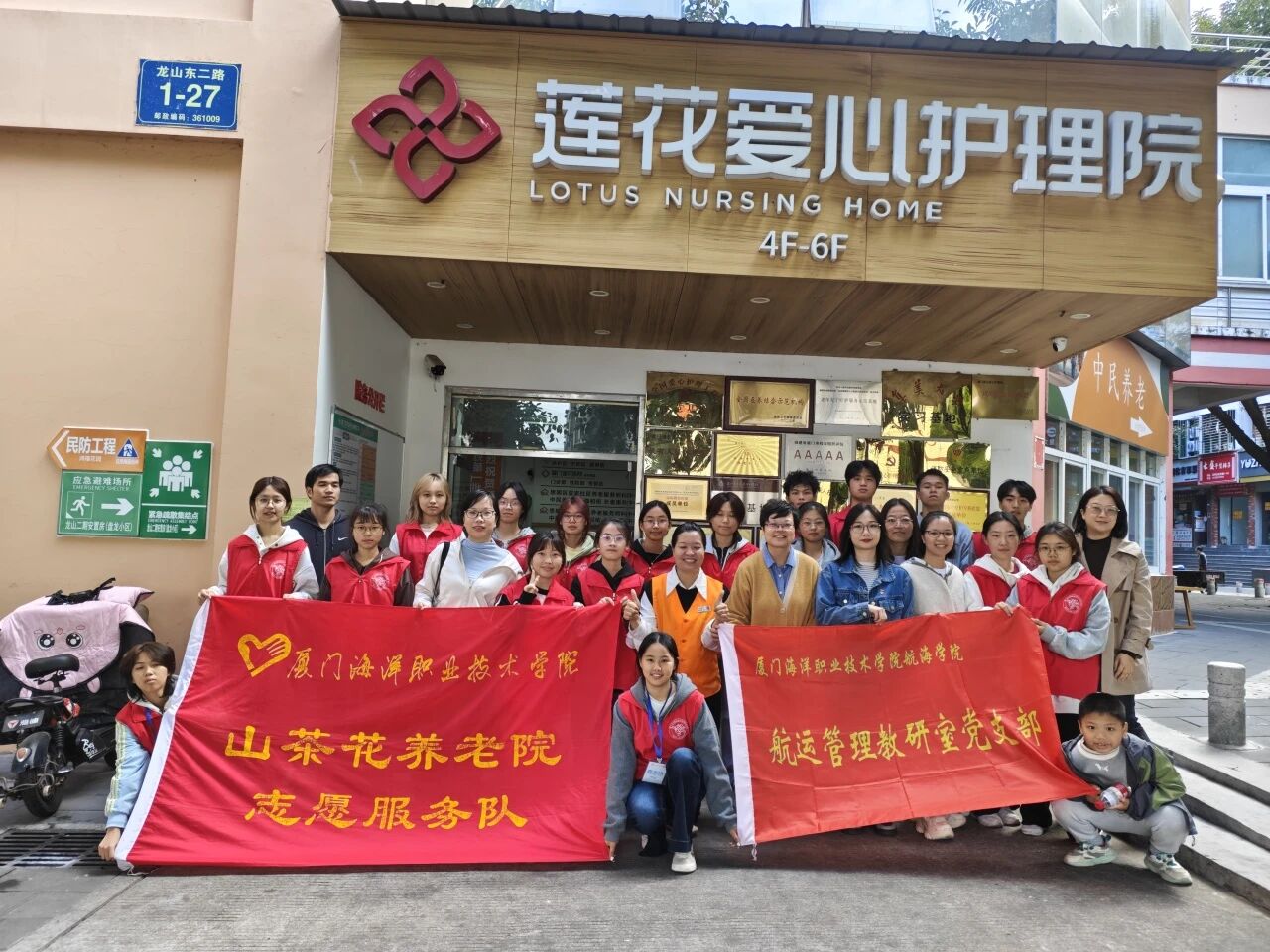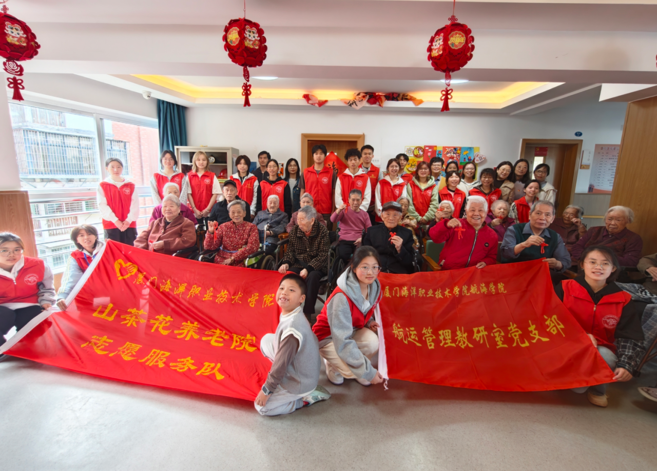 2025年11月30日上午,厦门海洋职业技术学院山茶花志愿者团队在航运管理教研室党支部老师的带领下走进莲花敬老院,与爷爷奶奶们共同开展了一场温馨而深刻的“中国共产党人精神谱系”主题宣讲活动。活动在学生们带来的《感恩的心》手势舞中拉开序幕,青春与温情交织,为现场增添了活力与暖意。随后,学生个人才艺展示进一步活跃了氛围。
