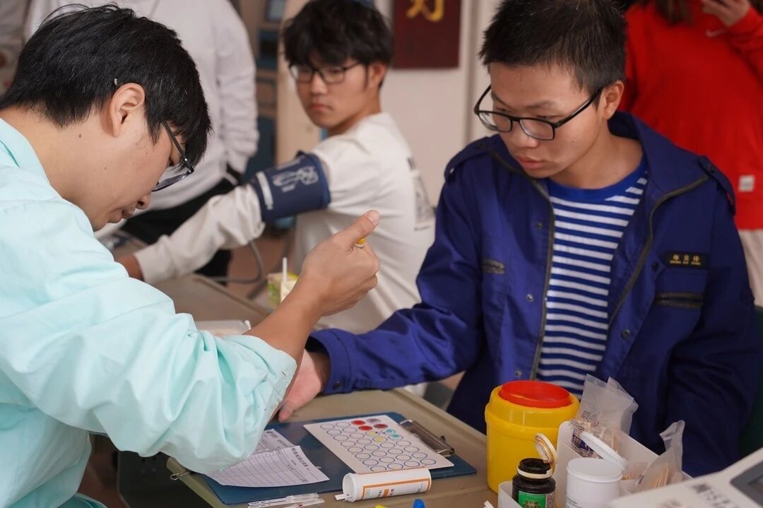 活动现场同学们有序排队,登记区、体检区、初筛区、采血区、休息区依次排开,医护人员与志愿者们默契配合,为献血者提供全方位的贴心服务。