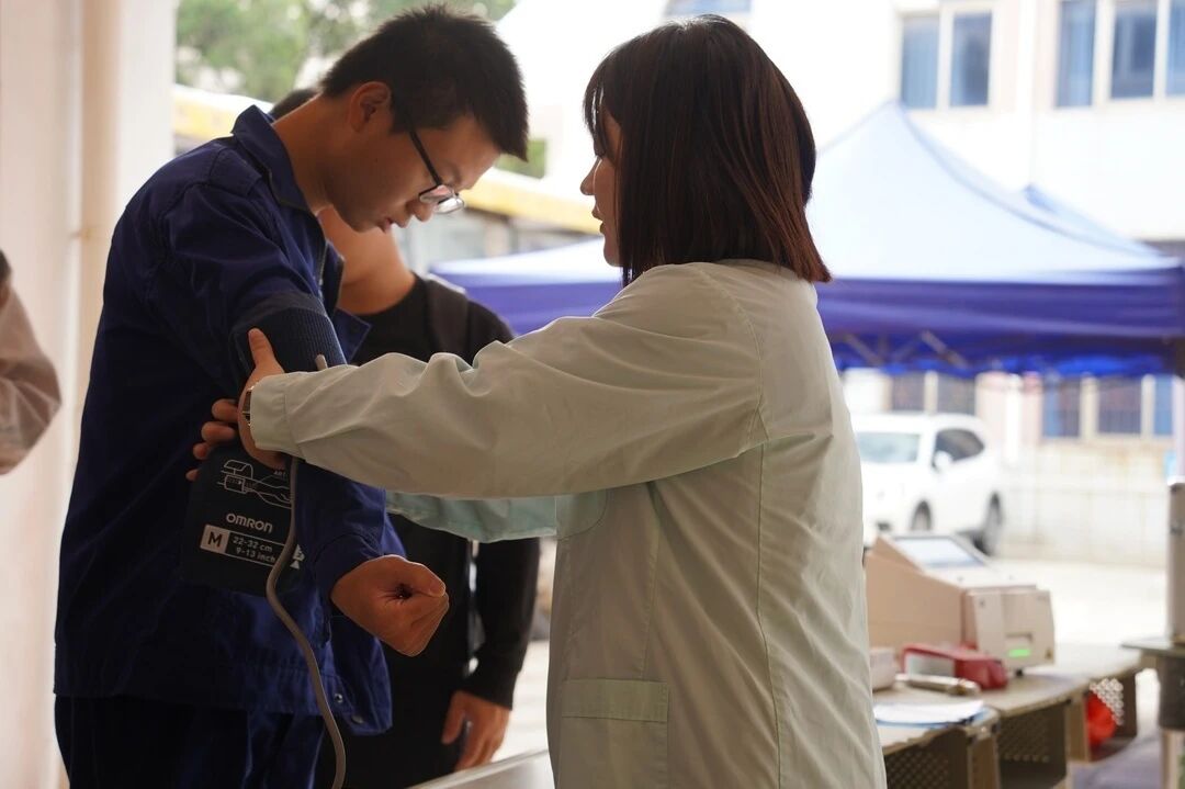 医护人员细致地为大家测量血压、询问健康状况,严把献血安全关。