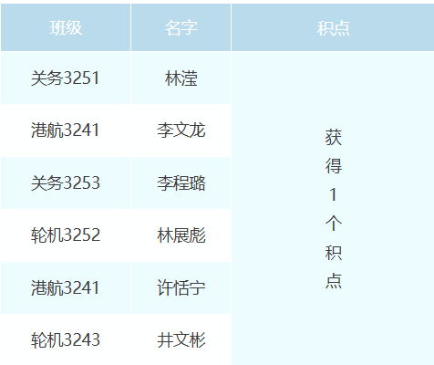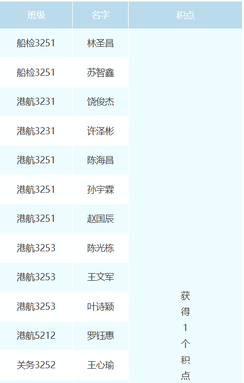 获得1个积点的同学名单