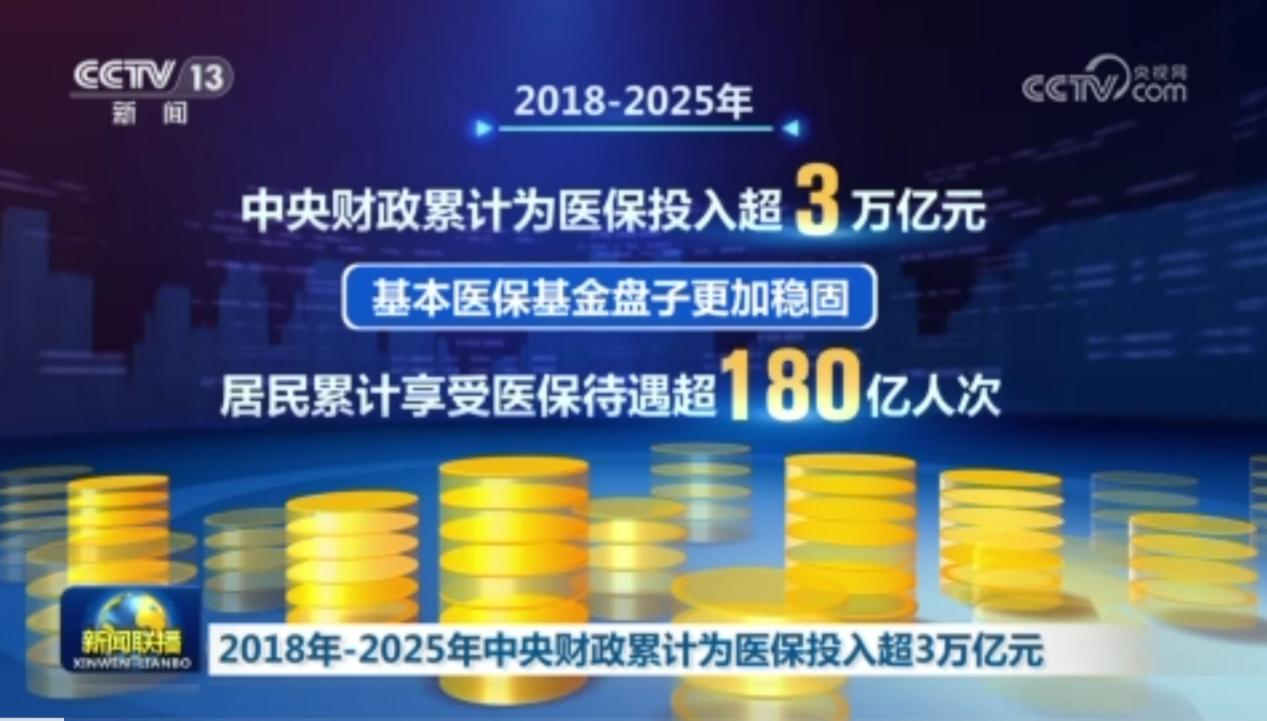 记者12月17日从国家医保局获悉,2018-2025年中央财政累计为医保投入超3万亿元,基本医保基金盘子更加稳固,居民累计享受医保待遇超180亿人次。