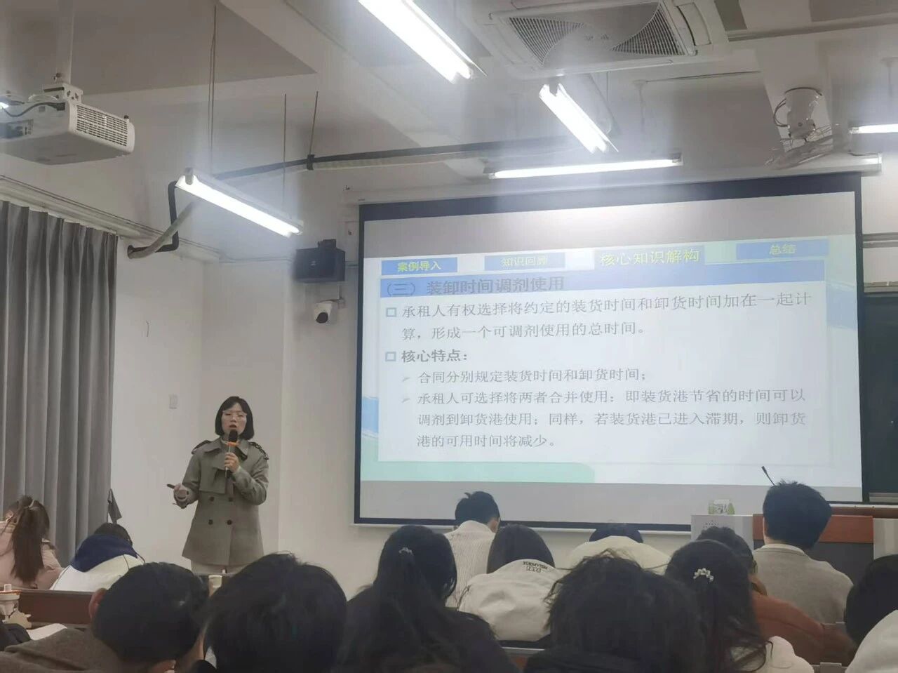 本次公开课紧密对接港口与航运管理专业核心能力培养要求,以“聚焦租船运输核心业务,强化复杂情境识别与问题解决能力”为主线,系统讲授了滞期费与速遣费的概念特征、合同条款设计及实务计算方法。庄小红老师将价值引领与专业知识深度融合,明确课程思政目标为:服务国家开放战略,淬炼学生诚信守法、责任担当的职业精神,培育严谨细致的职业品质。
