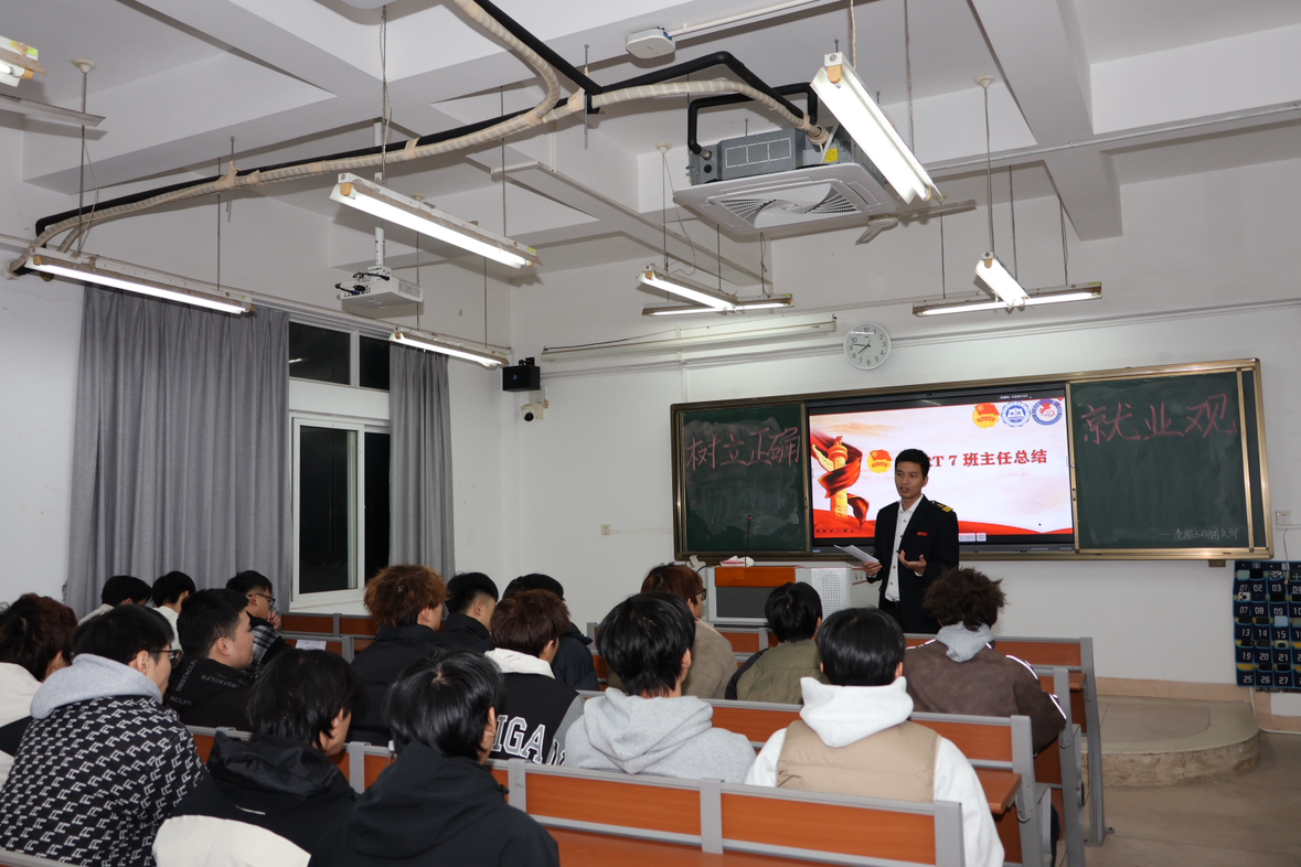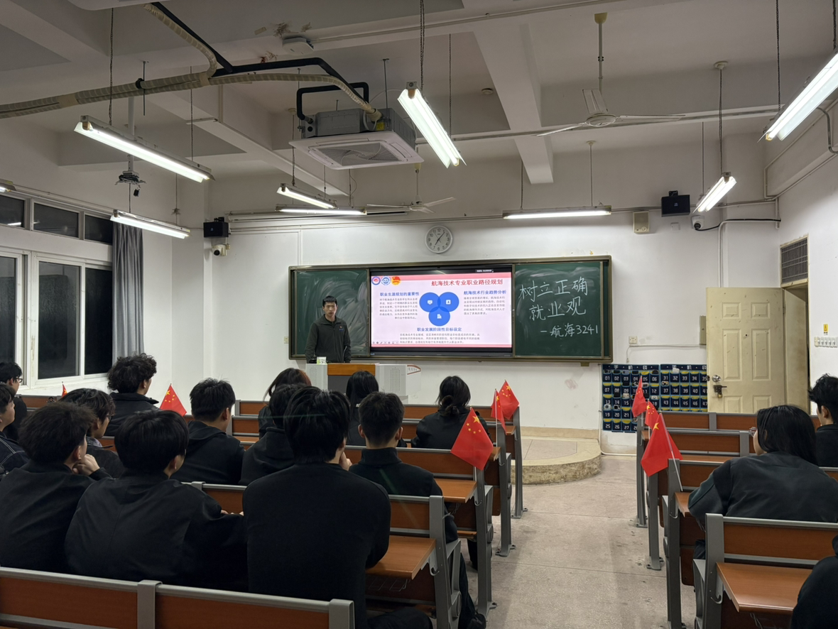 为引导青年学子认清就业形势、树立科学就业观,航海学院于2026年1月7日至8日,面向24级、25级全体学生开展“树立正确就业观”主题团会。团会由各班级团支书主持分享,通过案例解读、视频观看等多元形式,引导同学们深化对就业观的认知,规划职业发展之路。