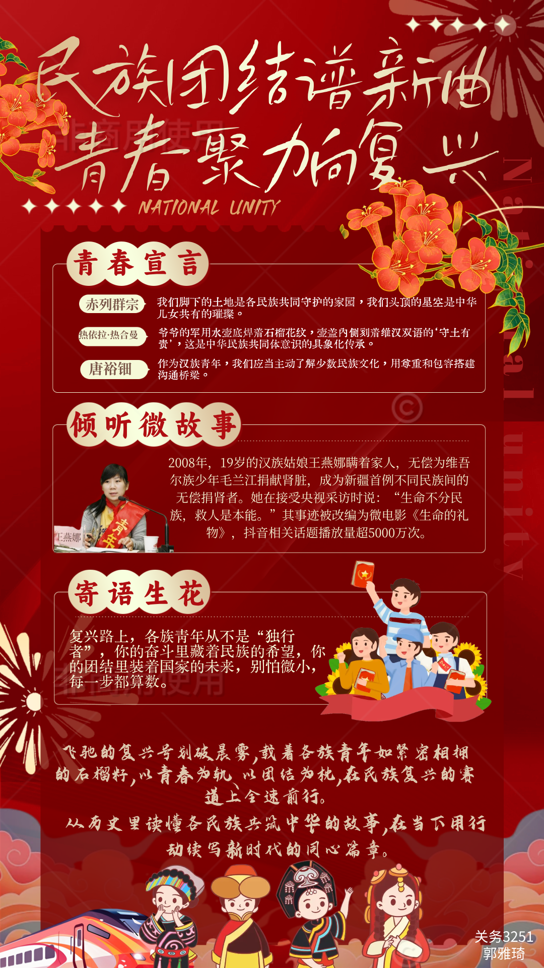 自"民族团结绽芳华,青春共筑复兴梦"主题活动开展以来,同学们热烈响应、积极参与。本次活动共收到31份各具特色的投稿。
