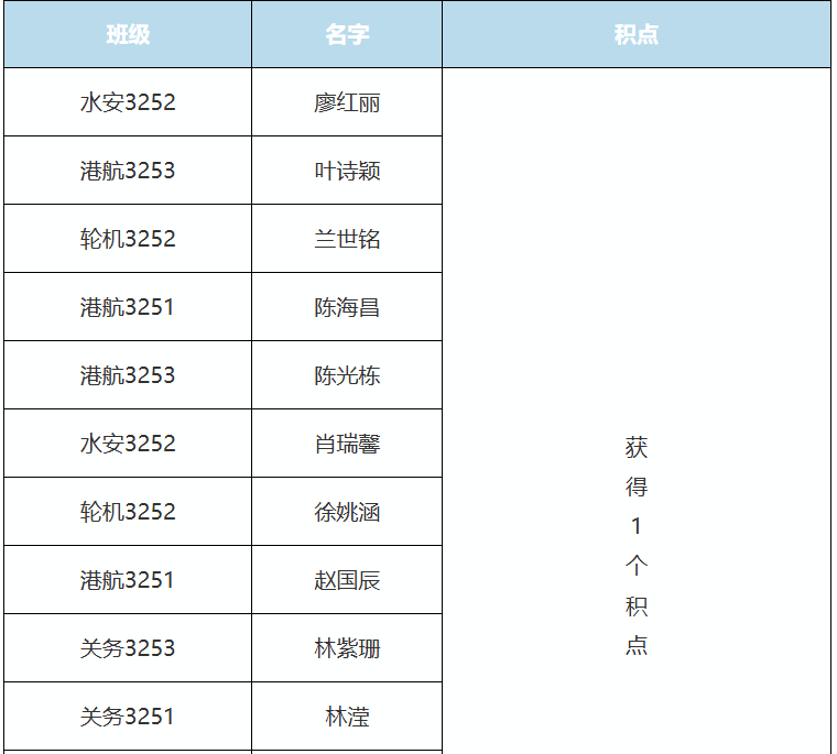 获得1个积点的同学名单