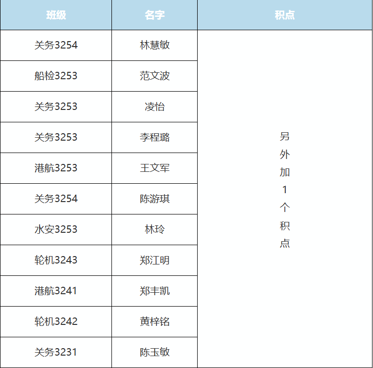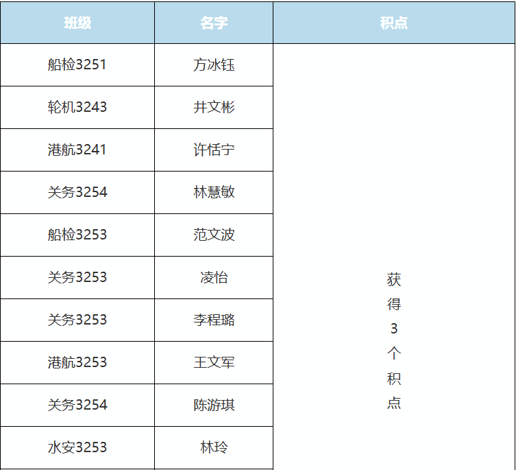 获得3个积点的同学名单