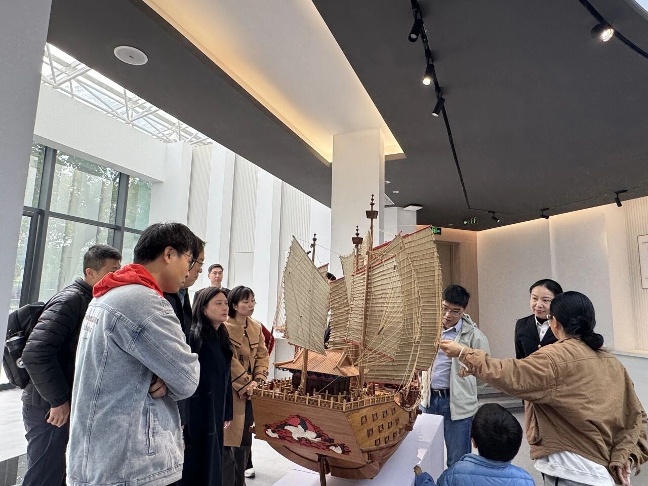 在讲解员的带领下,教师们依次参观了学院党建中心、船模大师工作室、金工实训中心、大型船舶操纵模拟器、轮机模拟实训室、诚毅船、智慧港航实训室、海丝结工作室和3D港航实训室等,系统了解学院特色实训教学环境。一路走来,教师们不仅直观感受了学院百年发展历史、党建丰硕成果、特色船模制作工艺以及各专业特色硬件设施,更系统了解了学院专业体系与海洋文化的独特魅力,为后续搭建跨专业协作与教学科研创新奠定了实践认知基础。