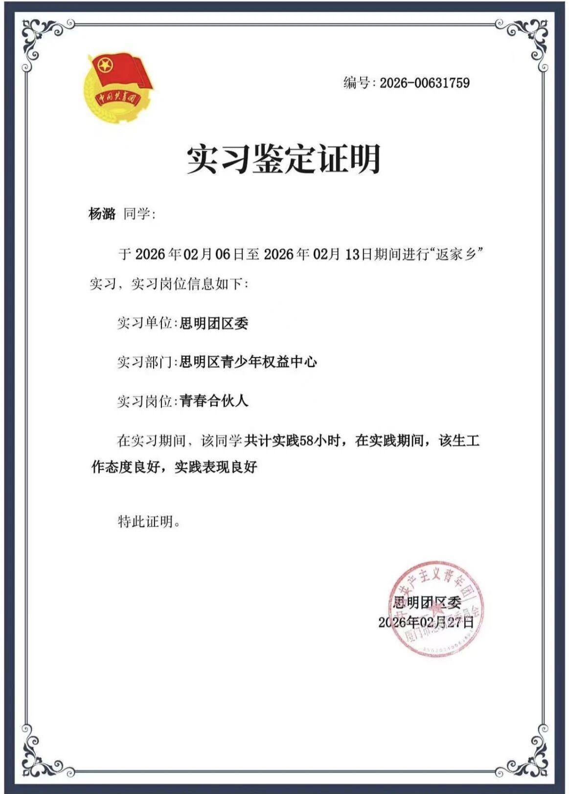 实践期间,我主要负责维持课堂秩序和作业辅导工作,参与思明区团委组织的2026年寒假爱心托管班。此次托管班由团厦门市委和团思明区委共同主办,面向辖区适龄儿童提供寒假爱心托管服务,重点抓好作业辅导环节,帮助孩子高效完成寒假作业,切实解决家长课后辅导的烦恼。