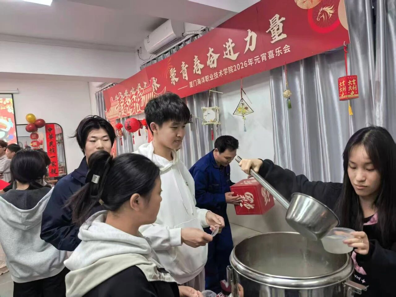 灯火映团圆,喜乐满校园。厦门海洋职业技术学院航海学院“红红火火·喜乐元宵”主题元宵喜乐会,于3月3日(周二)18:00-21:00在思明校区一站式学生社区舞蹈室圆满落幕。航海学院党总支副书记赵世一、团总支书记吕文庭及各位辅导员老师莅临现场,与全体航海er欢聚一堂,赏花灯、猜灯谜、享欢乐,共度温馨热闹的元宵佳节。
