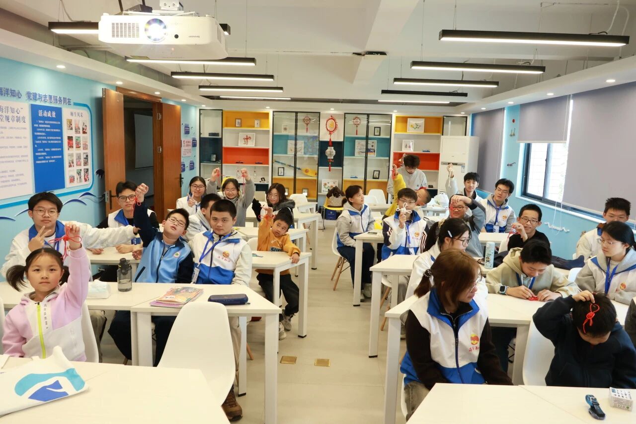 将民族团结的种子播撒到社区和基层,学生第一、第二党支部联合仙岳社区、莲岳学校开展“海洋知心”志愿服务活动,现场教学编织象征民族团结的“同心结”,将爱与温暖传递到社区群众心中。