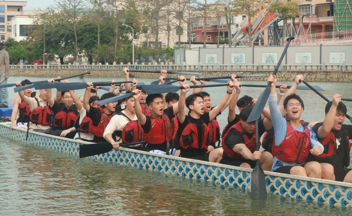 经过长达一年的沉积,航海学院从40余名报名师生中优中选优,组建了一支由29人组成的精锐队伍。在今年的比赛中,航海3241班吴盛荣同学再次担任拉绳员,鼓手节奏精准如钟,舵手稳控方向如磐,4位教师队员、2名女生与12名男生紧密配合,凝聚成一股势不可挡的合力。比赛现场,队员们口号震天、齐心协力,面对强敌毫不退缩,在多轮鏖战中凭借坚定信念与出色战术,一路过关斩将,最终问鼎冠军!