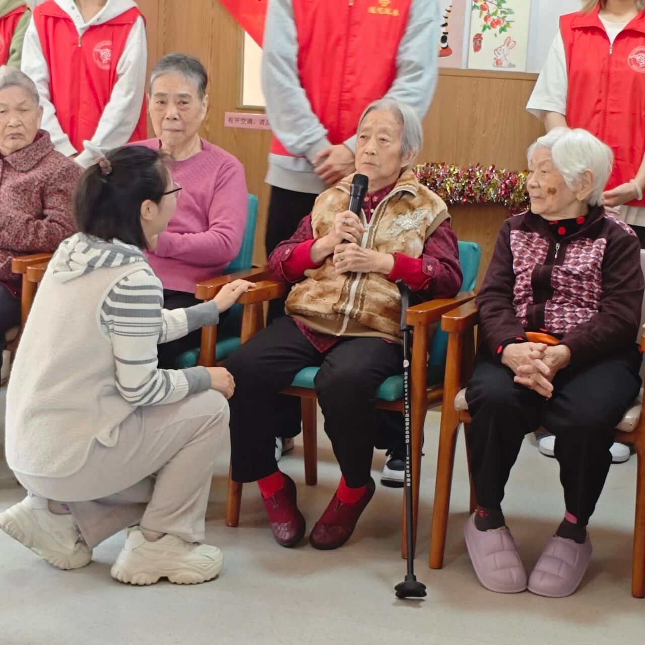 2025年11月30日上午,厦门海洋职业技术学院山茶花志愿者团队在航运管理教研室党支部老师的带领下走进莲花敬老院,与爷爷奶奶们共同开展了一场温馨而深刻的“中国共产党人精神谱系”主题宣讲活动。活动在学生们带来的《感恩的心》手势舞中拉开序幕,青春与温情交织,为现场增添了活力与暖意。随后,学生个人才艺展示进一步活跃了氛围。