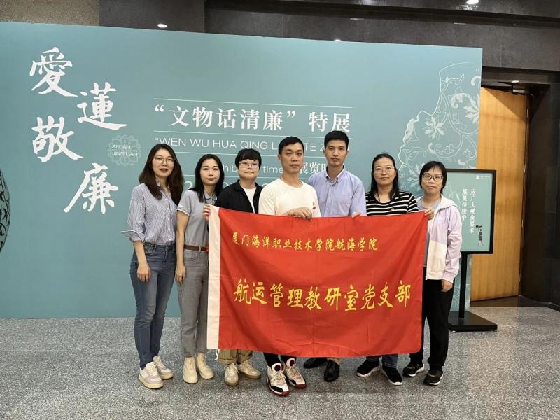 首先,航运管理教研室党员参观了厦门市博物馆举办的“爱莲敬廉——文物话清廉特展”。“爱莲敬廉”特展以“莲”与“廉”的谐音,巧妙地将莲花的高洁与清廉的品质相联系,展览的布置极具匠心,1100平方米的展览空间,280米的展线,通过三个单元——“赏莲正当时”“品莲话清廉”“廉者皆可爱”展示了179件与“莲”相关的珍贵文物。这些文物不仅让我们欣赏到莲花的美丽,更通过它们背后的故事,传递出敬廉的深刻内涵。