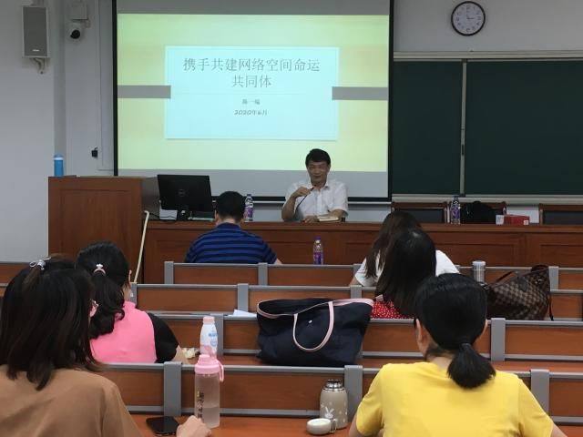 6月16日,院党委书记陈一端在思明校区为航海系教师党员上主题为《携手共建网络空间命运共同体》的党课。