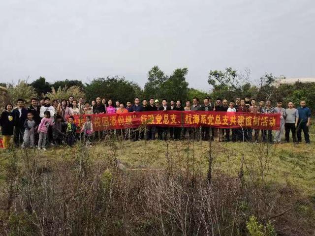 在第四十一个植树节来临之际,为构建生态文明美丽校园。3月15日上午,航海技术系党总支组织30余名师生党员与院行政党总支开展共建植树活动。