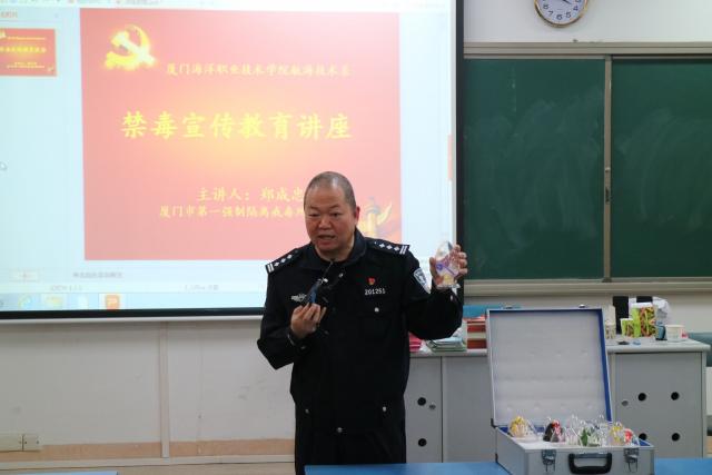 为增强师生识毒、防毒知识,提高师生拒毒、禁毒意识,做好禁毒宣传志愿工作。月19日,航海技术系特邀厦门市第一强制隔离戒毒所郑成忠教导员,于思明校区教学楼106教室开展禁毒宣传教育讲座。逾百名航海师生参加此次活动。