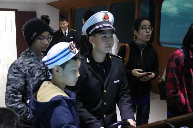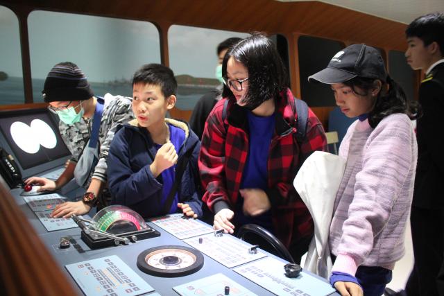 课前,海洋知心小朋友主动与泰国小朋友“一对一”结对子,在航海志愿者及义教老师的带领下,他们首先进行了“大型船舶操纵模拟体验课”。在航海模拟实训室里,小朋友们认真听讲,并饶有兴致地进行实操演练,体验了乘风破浪的感觉,感受了有趣的航海文化。