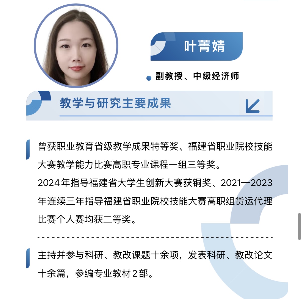 百年来,学院已为国家培养了3万多名中高级航海类专门人才,校友遍布五洲四海,献身于祖国的航运事业。近十年,学院在科学研究和教学改革方面取得了显著的成绩,获得国家艺术基金项目1项;教育部“高校思想政治工作质量提升综合改革与精品建设项目”1项;教育部港澳台国情重点项目1项;教育部“1+X”证书制度试点项目2项;全国职业院校技能大赛职业院校教学能力比赛三等奖1项;全国职业教育专业教学资源库子项目5项;福建省高等职业教育教学成果特等奖2项、二等奖1项,全国物流职业教育成果奖二等奖1项;全国港航物流与管理专业教师教学设计竞赛一等奖1项、三等奖1项;福建省职业院校信息化教学大赛一等奖 3 项、二等奖1项、三等奖4项;福建省“互联网+”大学生创新创业大赛金奖 2 项,银奖 7 项,铜奖 4 项;获得省级课程思政示范项目2项,省级课程思政示范团队2 个;建设省级教学资源库1个,省级精品在线开放课程6门,省级职业教育在线精品课程3门。省级以上教科研课题项目共计26项。共获得国际级奖项1项、国家级项目及奖项17项、省级项目及奖项38项;在国家级技能竞赛中,获特等奖1项,一等奖2项,二、三等奖11项,优秀组织奖1项;省级职业技能竞赛中,一等奖2项,二、三等奖18项。