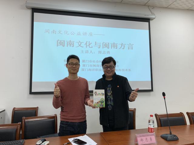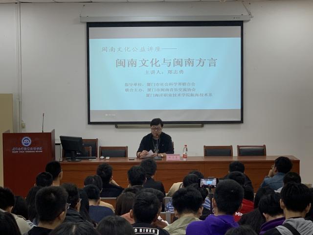 为弘扬传统文化,促进传统文化落地生根。12月11日下午两点,厦门海洋职业技术学院(思明校区)特邀素有“大陆闽南歌王”的郑志勇,开展主题为“闽南文化与闽南方言”的讲座。