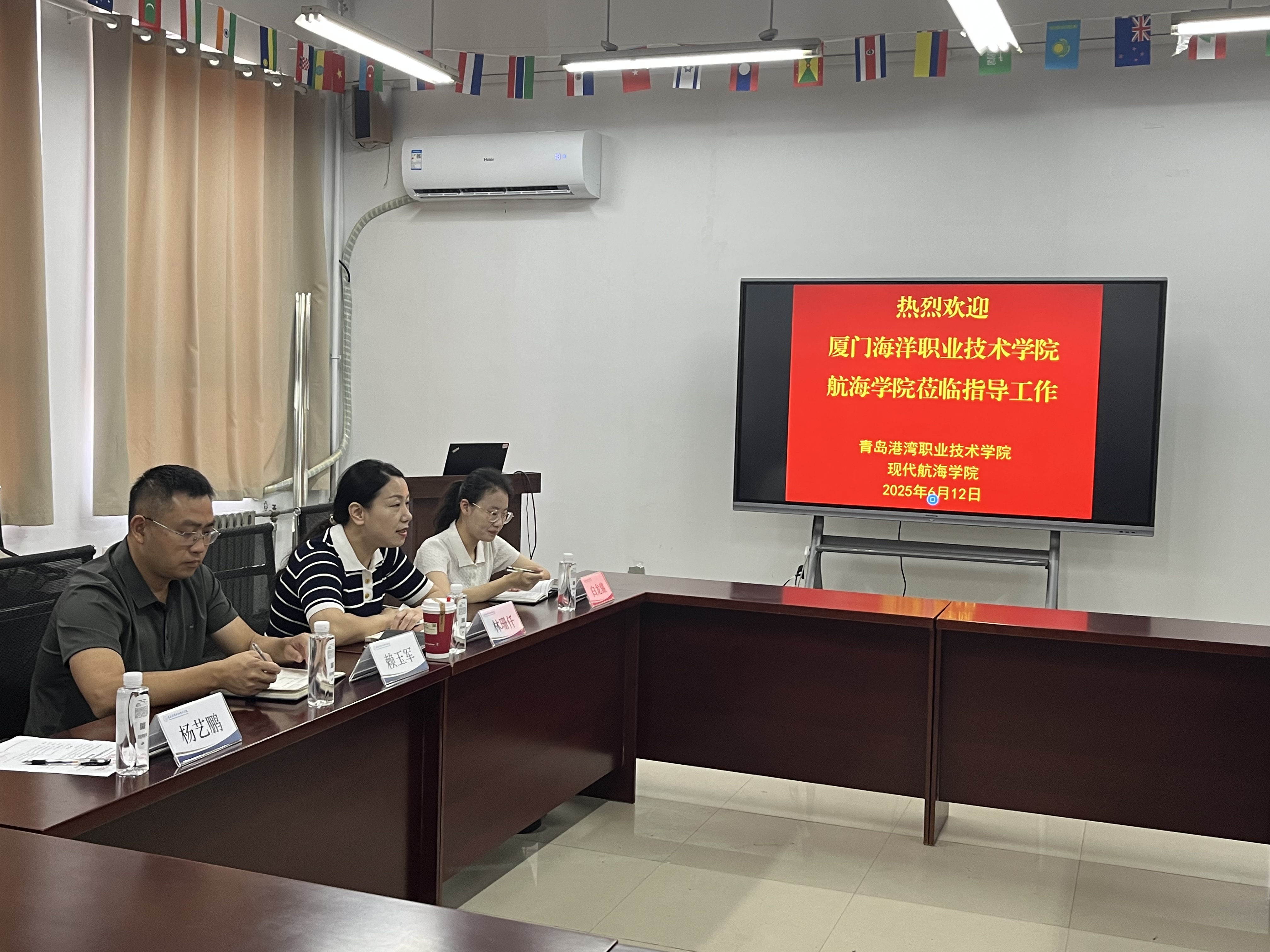 为深入贯彻国家职业教育改革精神,推动航海类专业高质量发展,近日,厦门海洋职业技术学院航海学院党总支书记、院长林珊仟率调研团队赴青岛港湾职业技术学院现代航海学院开展专题调研。本次调研聚焦海上专业半军事化管理体系构建、职业技能考证教学优化等核心议题,旨在通过校际深度交流实现经验互鉴、资源共享,为航海职业教育创新发展赋能。