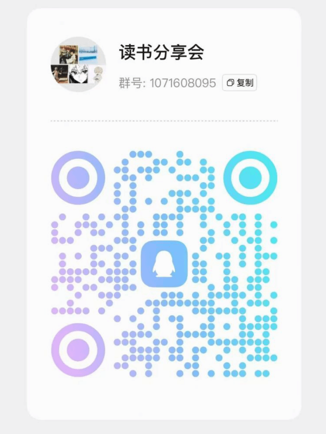 报名方式:扫描下方 QQ 二维码,加入读书分享会招募群(群内将同步报名流程,记得及时关注群消息哦~)