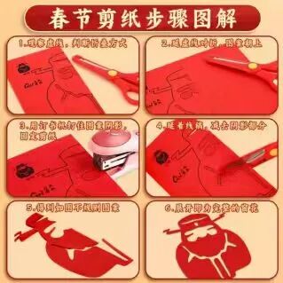 3. 作品创作:参与者在简单学习后可根据提供的材料(窗花、生肖、吉祥图案等)完成自己的剪纸作品。