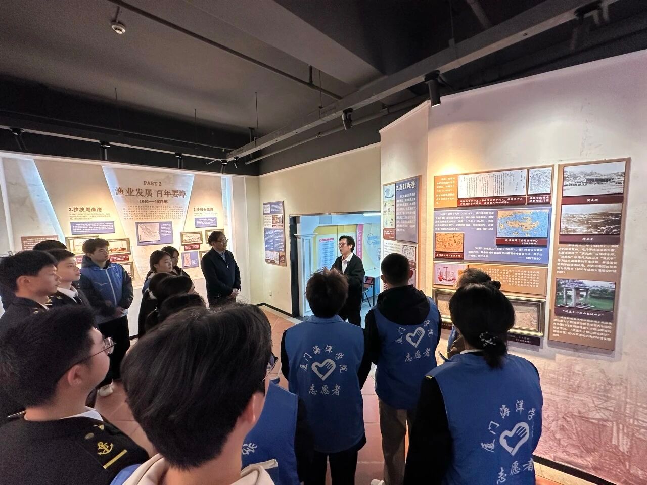在厦门沙坡尾活态展示馆内,精美的“王船”模型静静陈列,诉说着跨越海峡的民俗记忆。近日,厦门海洋职业技术学院航海学院的20名师生来到这里,开展了一场别开生面的社会实践。队伍中,既有航海技术、轮机工程技术、水路运输与安全管理、船舶检验等专业的大陆学子,也有台籍教师蔡弼凯博士,学院团总支书记吕文庭老师、世界船模文化博物馆讲解总负责洪裕荣老师。他们以“王船”文化为纽带,走进沙坡尾这片对台历史地标与当代台青热土,触摸两岸共同的历史脉搏,探寻文化创新的融合路径。
