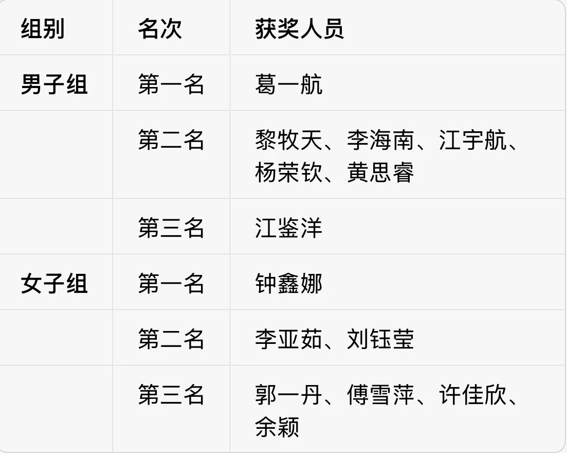 获奖名单
