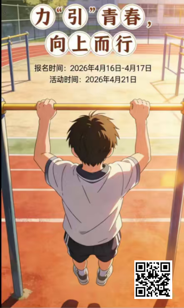 别再犹豫,别再等待,带上你的热情和活力,扫描下方二维码报名参与,让我们一起在运动中感受快乐,在汗水中遇见更好的自己!这个学期,让我们的校园生活,因运动而更加精彩!