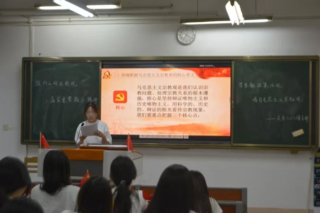 团会中,同学们系统学习了党的宗教工作基本方针与《宗教事务条例》等核心内容,深入解读了马克思主义宗教观的内涵与实践要求。