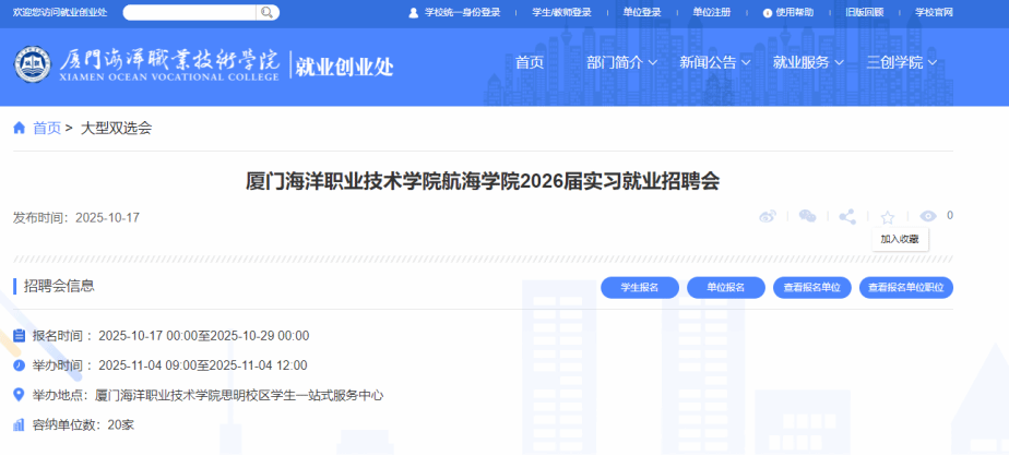 本次招聘会报名在我校“智慧就业服务平台”进行报名,智慧就业网地址https://jy.xmoc.edu.cn/career/index