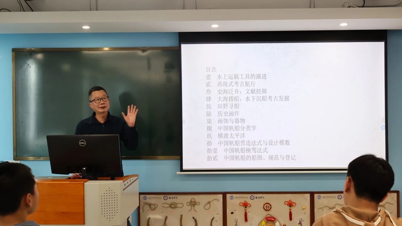 近日,厦门海洋职业技术学院思明校区海洋知心活动室举办了一场题为《中国帆船技术史接触入门》的专题讲座,本次讲座由长期致力于中国传统帆船研究与复原的学者许路主讲。现场师生齐聚,共同聆听许路系统阐述中国帆船从原始渡水工具到成熟航海系统的发展历程,内容涵盖技术演进、考古发现与文化遗产保护等多个维度。