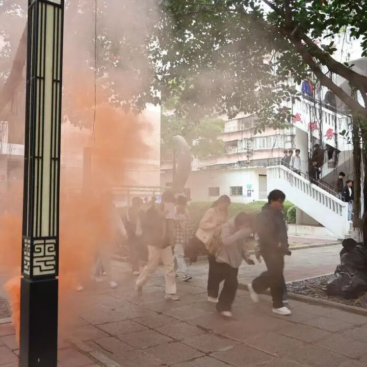 下午16时10分,随着火警警报声响起,演练正式拉开帷幕。总指挥发布“教学楼发生火灾,组织疏散”指令,各楼层安全员迅速引导同学们捂住口鼻,弯腰低姿,按照预定疏散路线快速、有序撤离至操场指定安全区域。各班级到达集合点后,辅导员清点人数并向现场指挥报告,确保全体人员安全撤离。