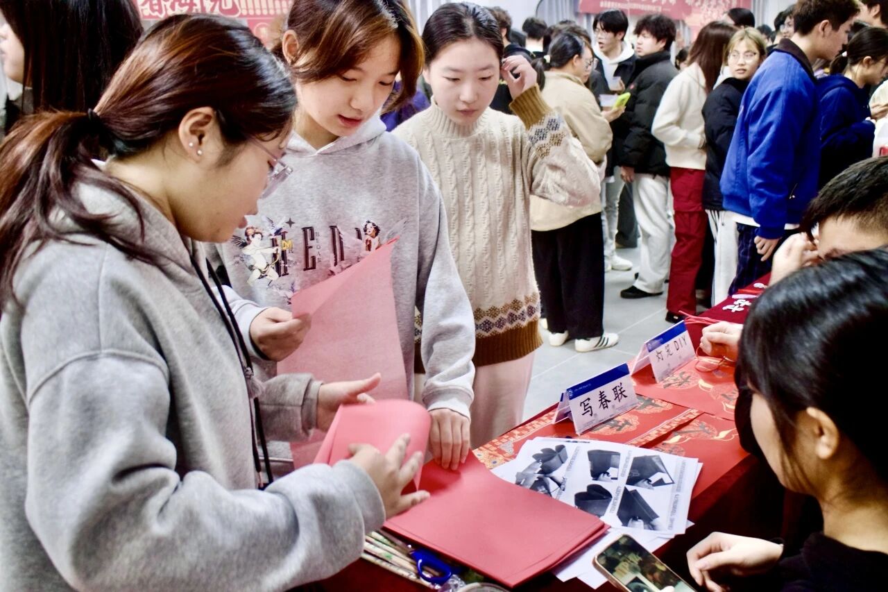展会现场,各式DIY灯笼错落摆放,光影交织成浪漫的元宵图景。猜灯谜抽奖环节将现场氛围推向高潮,趣味灯谜涵盖民俗、知识等多个类别,同学们结伴探讨,在解谜中感受中华传统文化魅力,猜中灯谜的同学还收获了惊喜小礼物,欢声笑语萦绕全场。大家手持精致花灯拍照打卡,用镜头记录元宵欢乐瞬间,让团圆美好在校园中传递。