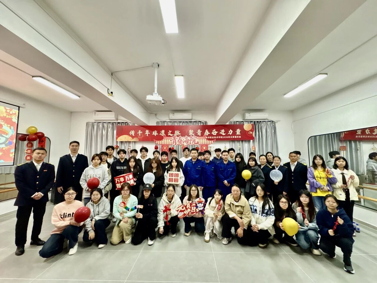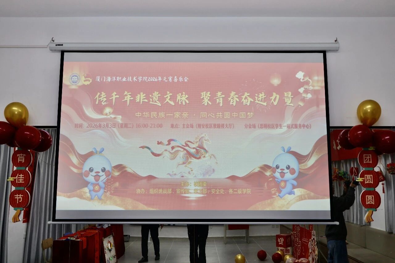 灯火映团圆,喜乐满校园。厦门海洋职业技术学院航海学院“红红火火·喜乐元宵”主题元宵喜乐会,于3月3日(周二)18:00-21:00在思明校区一站式学生社区舞蹈室圆满落幕。航海学院党总支副书记赵世一、团总支书记吕文庭及各位辅导员老师莅临现场,与全体航海er欢聚一堂,赏花灯、猜灯谜、享欢乐,共度温馨热闹的元宵佳节。