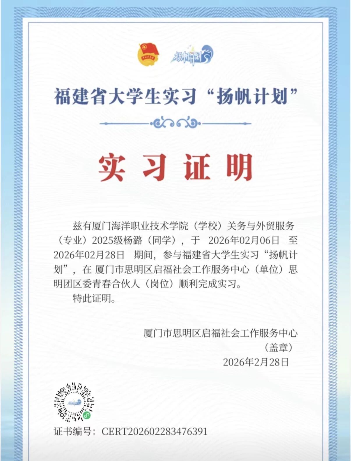 未来,我将继续扎根厦门、服务厦门,积极参与各类公益活动,在奉献中收获快乐,在服务中成长蜕变。青春因磨砺而出彩,人生因奉献而升华。这段寒托班的志愿经历,让我更加坚定了前行的方向——用微光点亮他人,用行动温暖家乡。因为我深信:我奉献,我快乐!